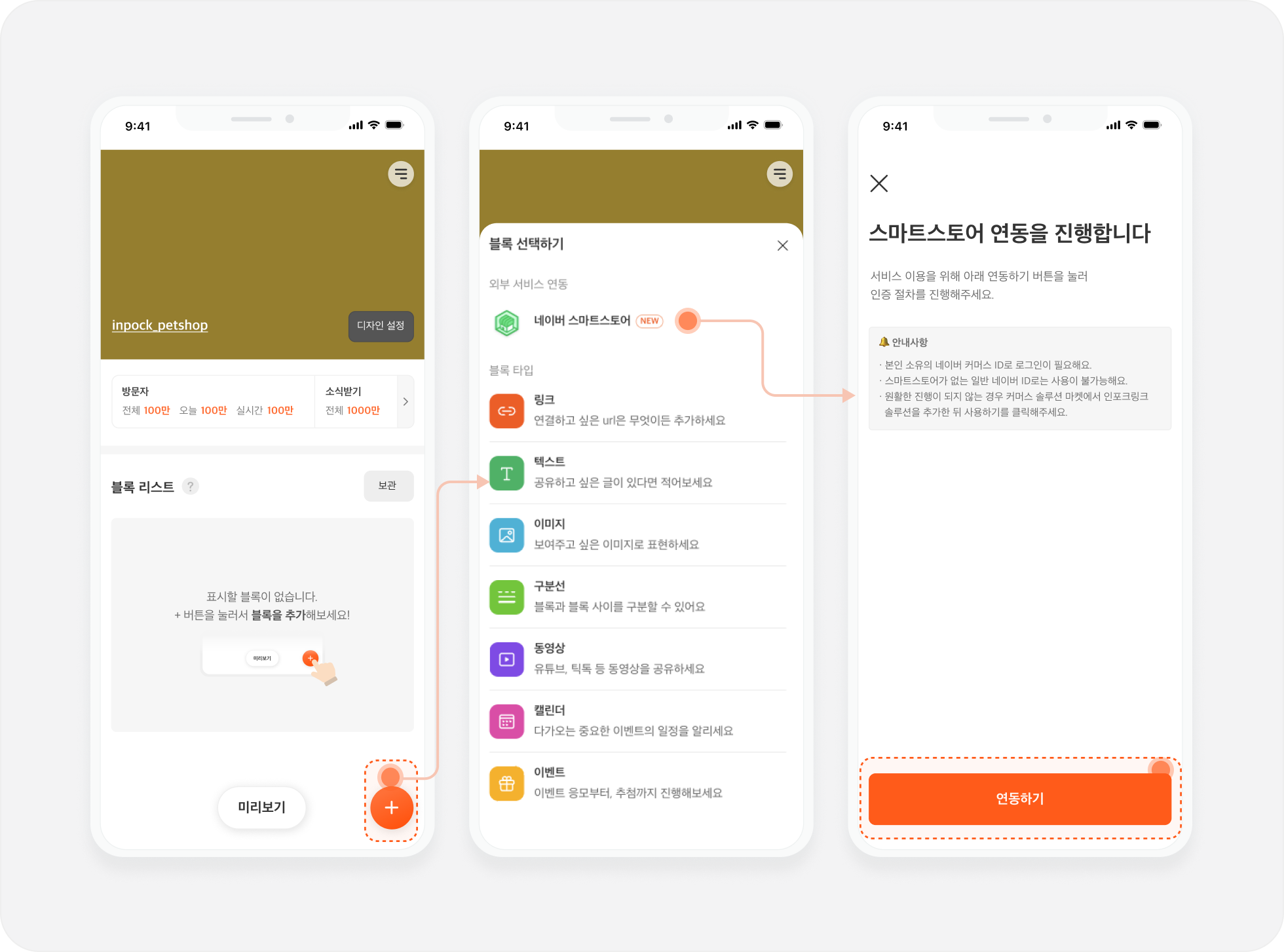 블록 선택하기에서 **네이버 스마트스토어 블록**을 만들어주세요.