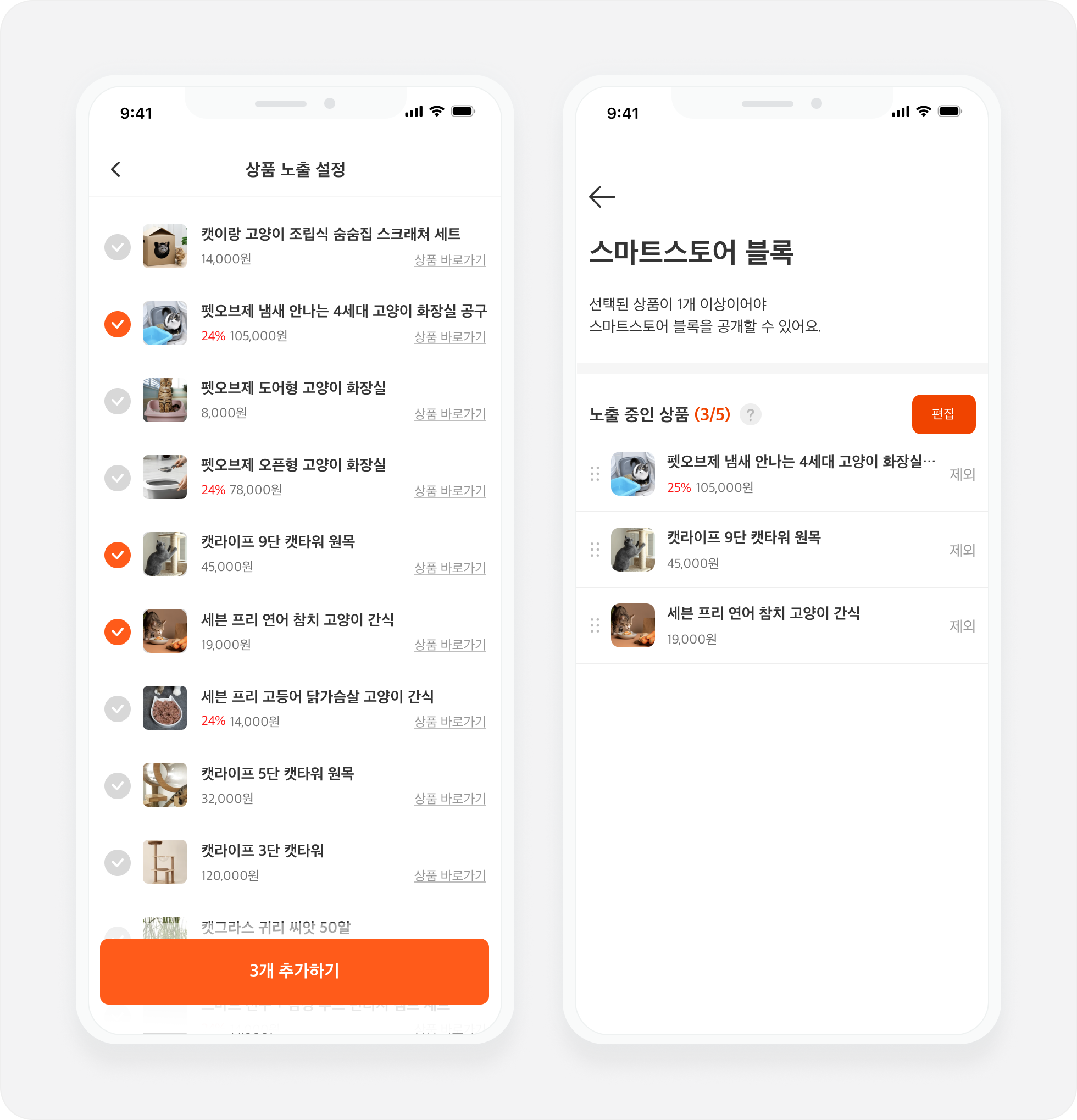 * 선택된 상품의 노출 순서를 변경하거나 제외할 수 있어요.