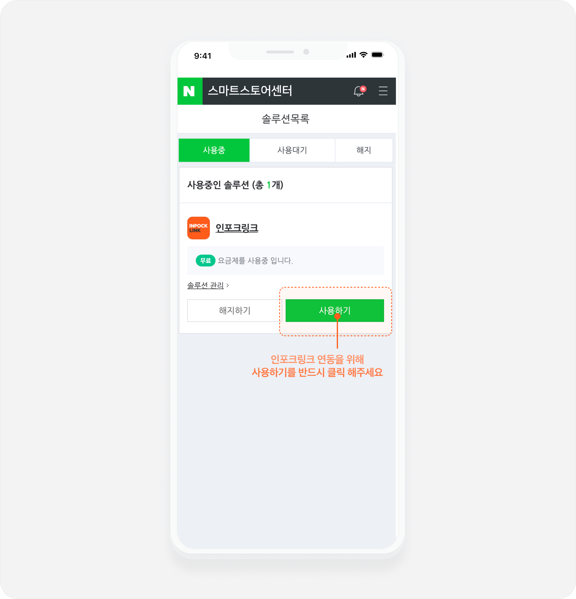 [네이버 스마트스토어 센터의  솔루션목록](https://sell.smartstore.naver.com/#/commerce-solution/solution-list)에 인포크링크가 등록되었습니다! &#x20;